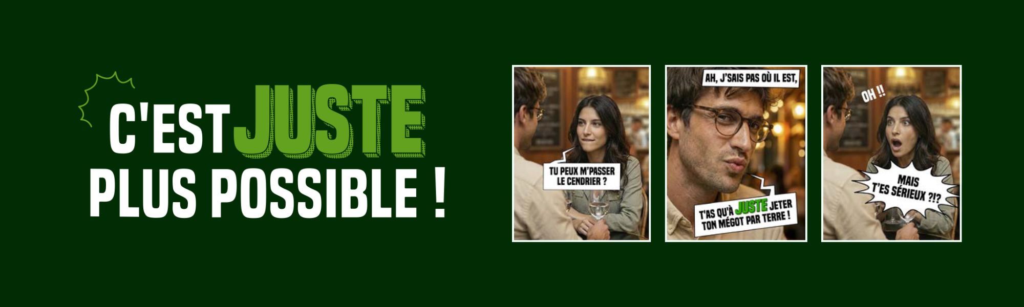 Avec la campagne « C’est juste plus possible ! », Gestes Propres met en lumière ces petits gestes du quotidien qui, accumulés, contribuent à la pollution de nos espaces publics et naturels.